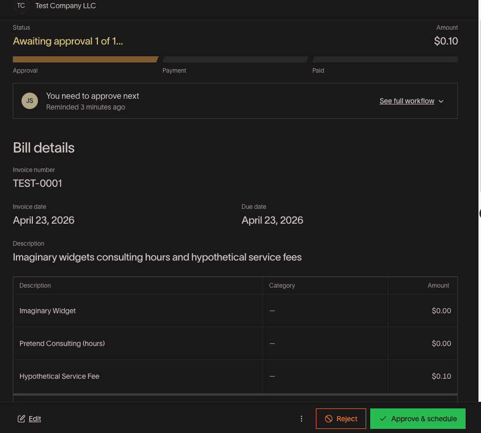 After Creating your Bill, click on Approve and Schedule.