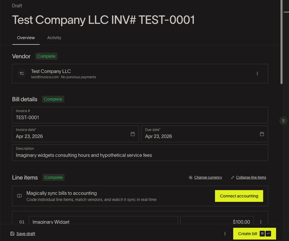 Once everything is set, Click on Create Bill